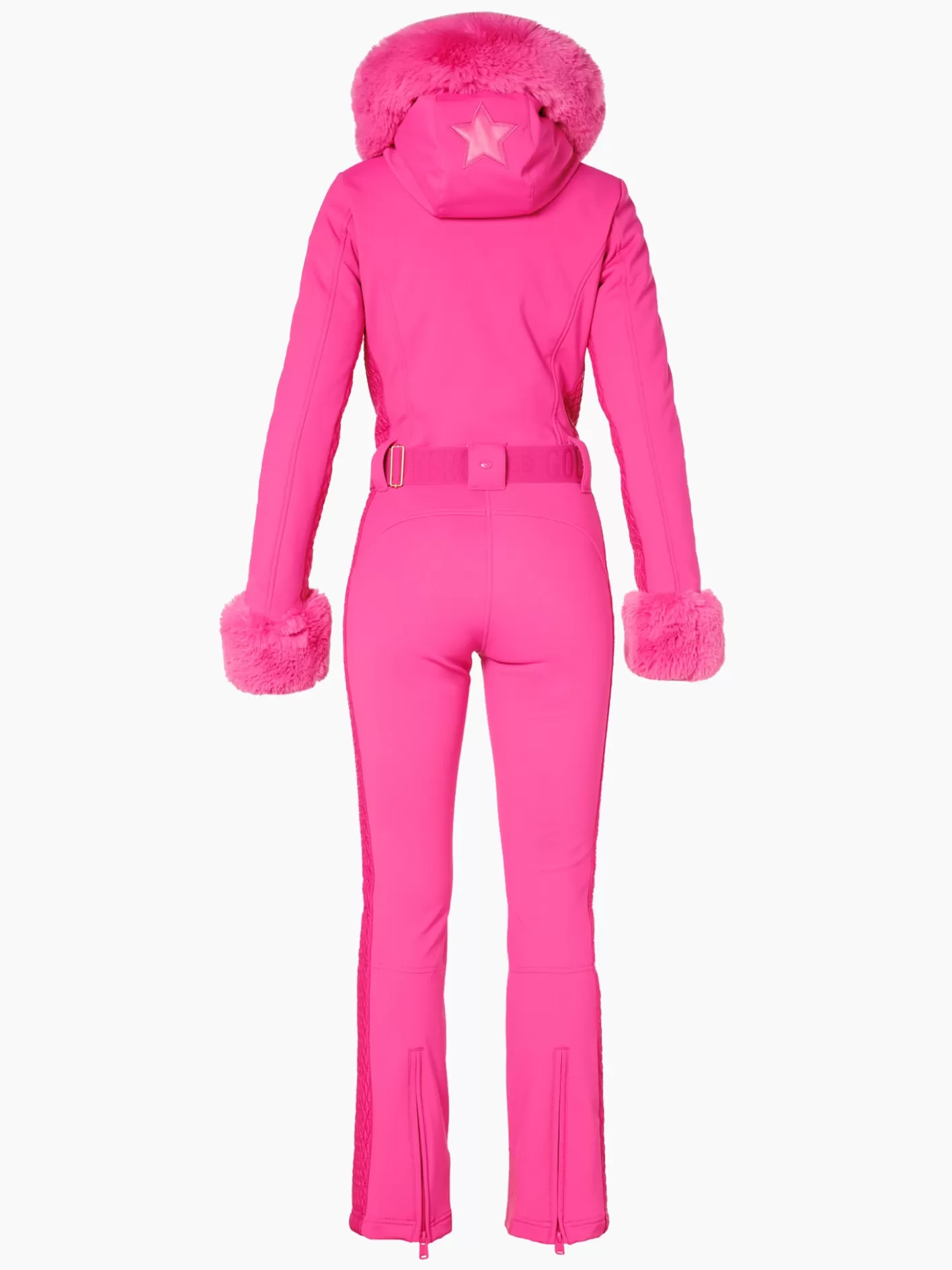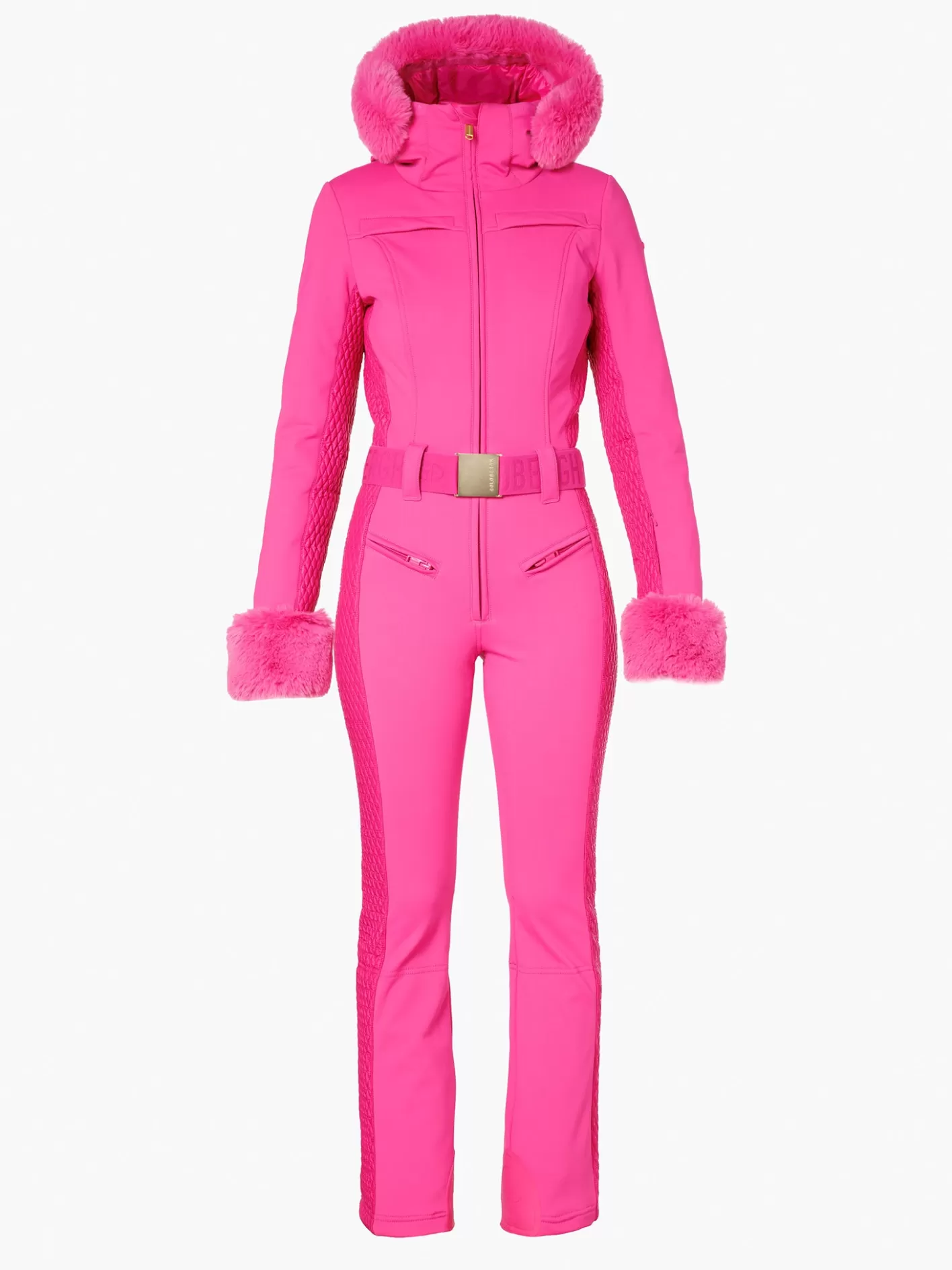 Softshell skipak met capuchon, rand van imitatiebont en manchetten van imitatiebont