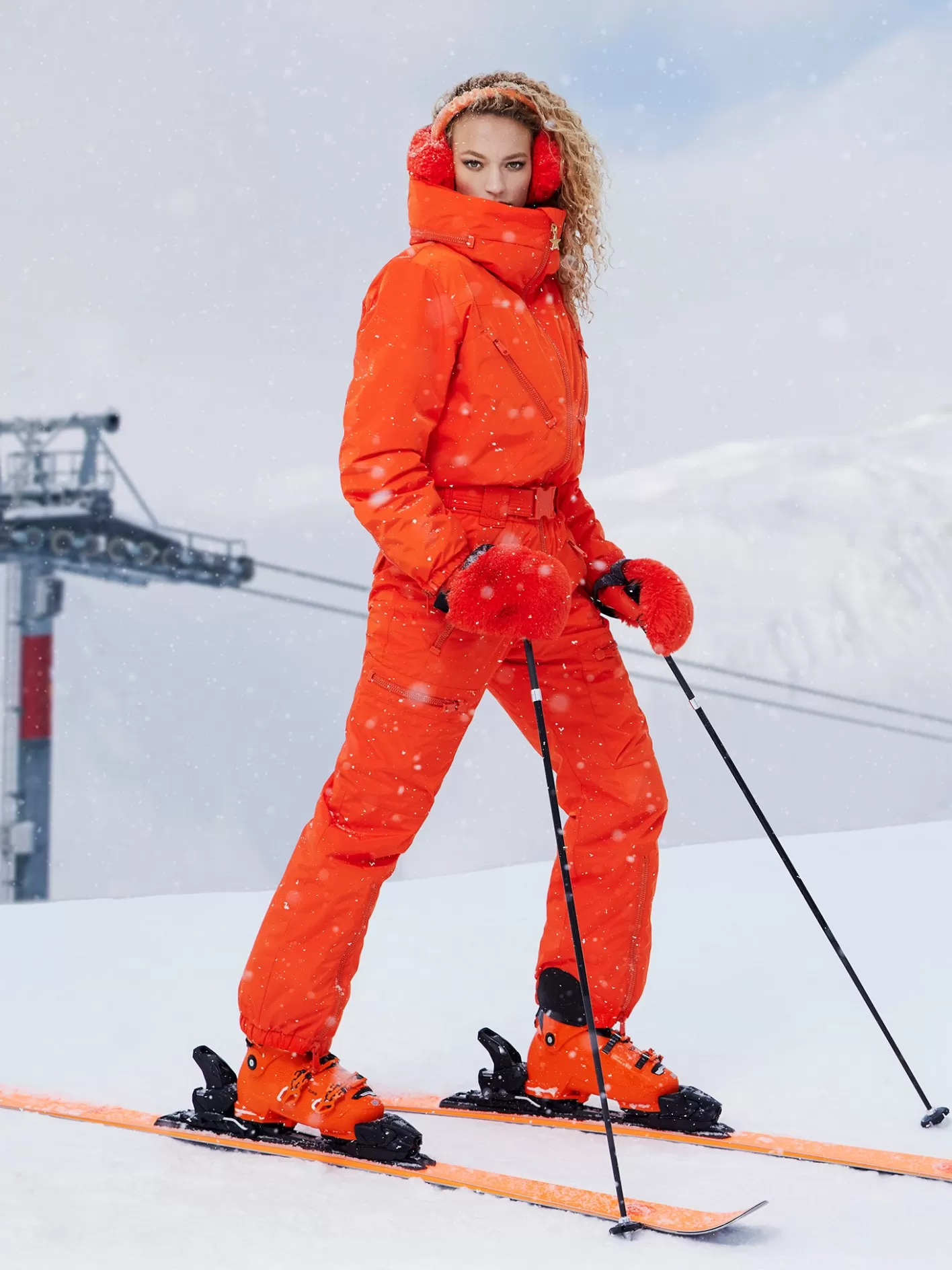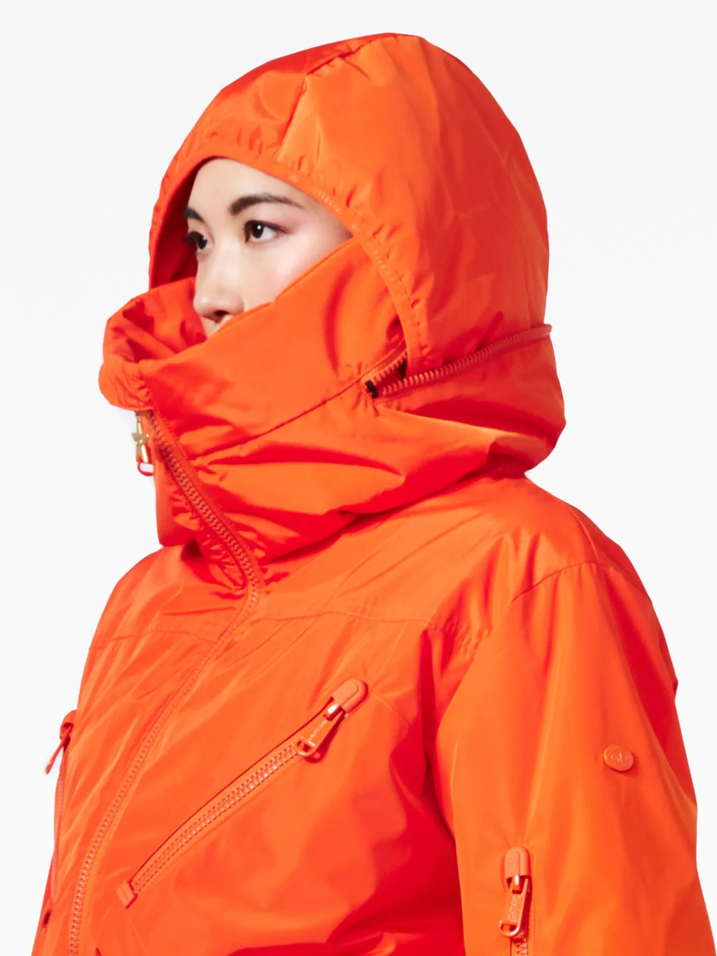 Gewatteerd skipak met capuchon uit de kraag en riem