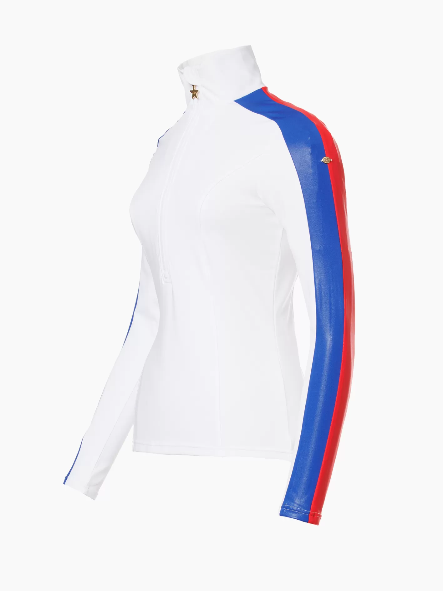 - Glanzende contrasterende dubbele streep inzet langs schouder en bovenmouw