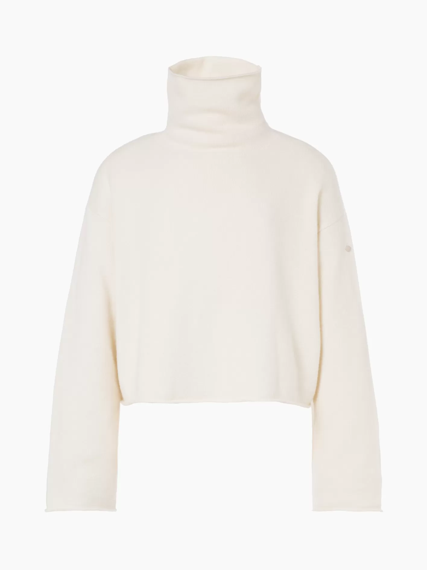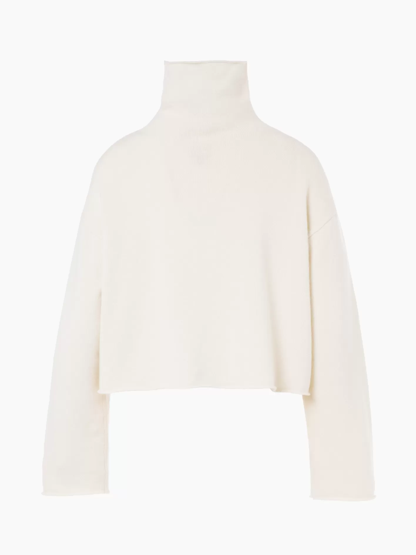 Zachte gebreide truiWol kasjmier mix, eenvoudig gebreidOpvouwbare kraagRechte, bredere mouwenRechte zoomKortere lengteMe…