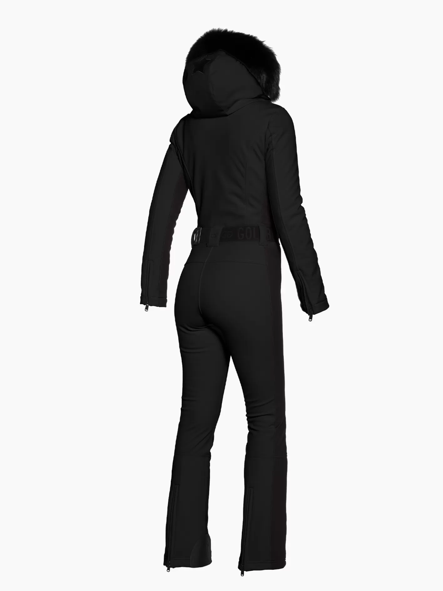 Softshell skipak met capuchon, extra beenlengte en imitatiebont rand