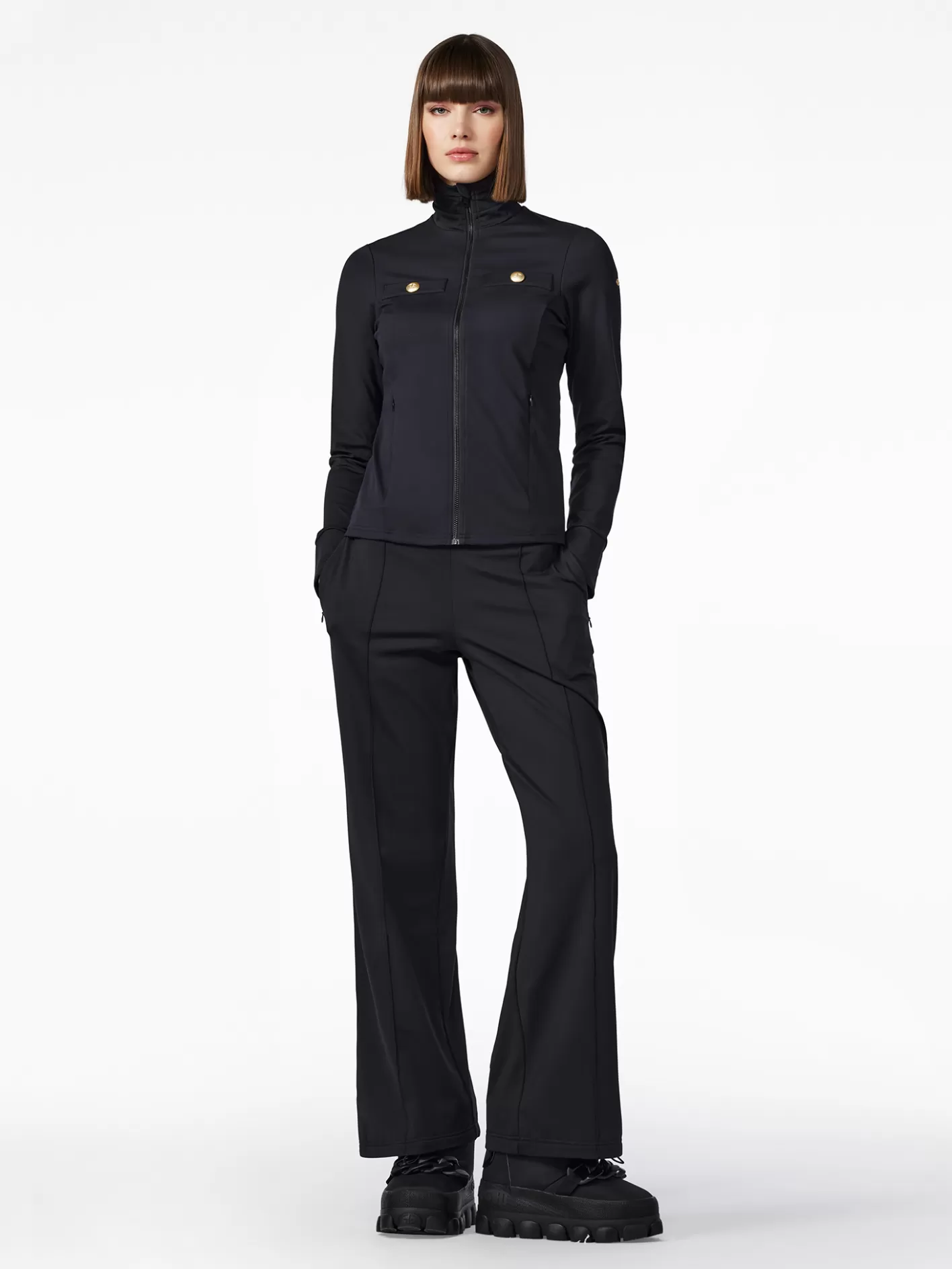 - Powerstretch interlock met een zachte geborstelde achterkant
