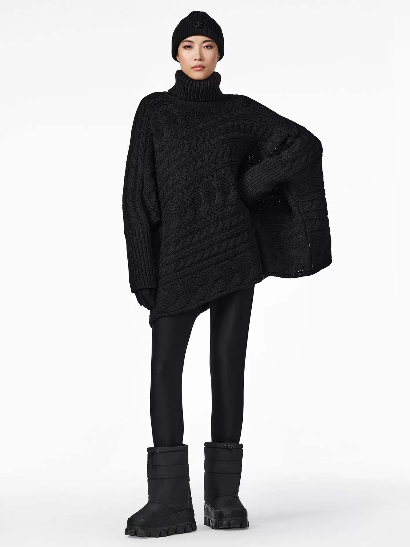 Asymmetrische gebreide kabeltruiChunky kabel gebreidAsymmetrische zoomOpvouwbare ribkraagLangere rib manchettenMetalen m…