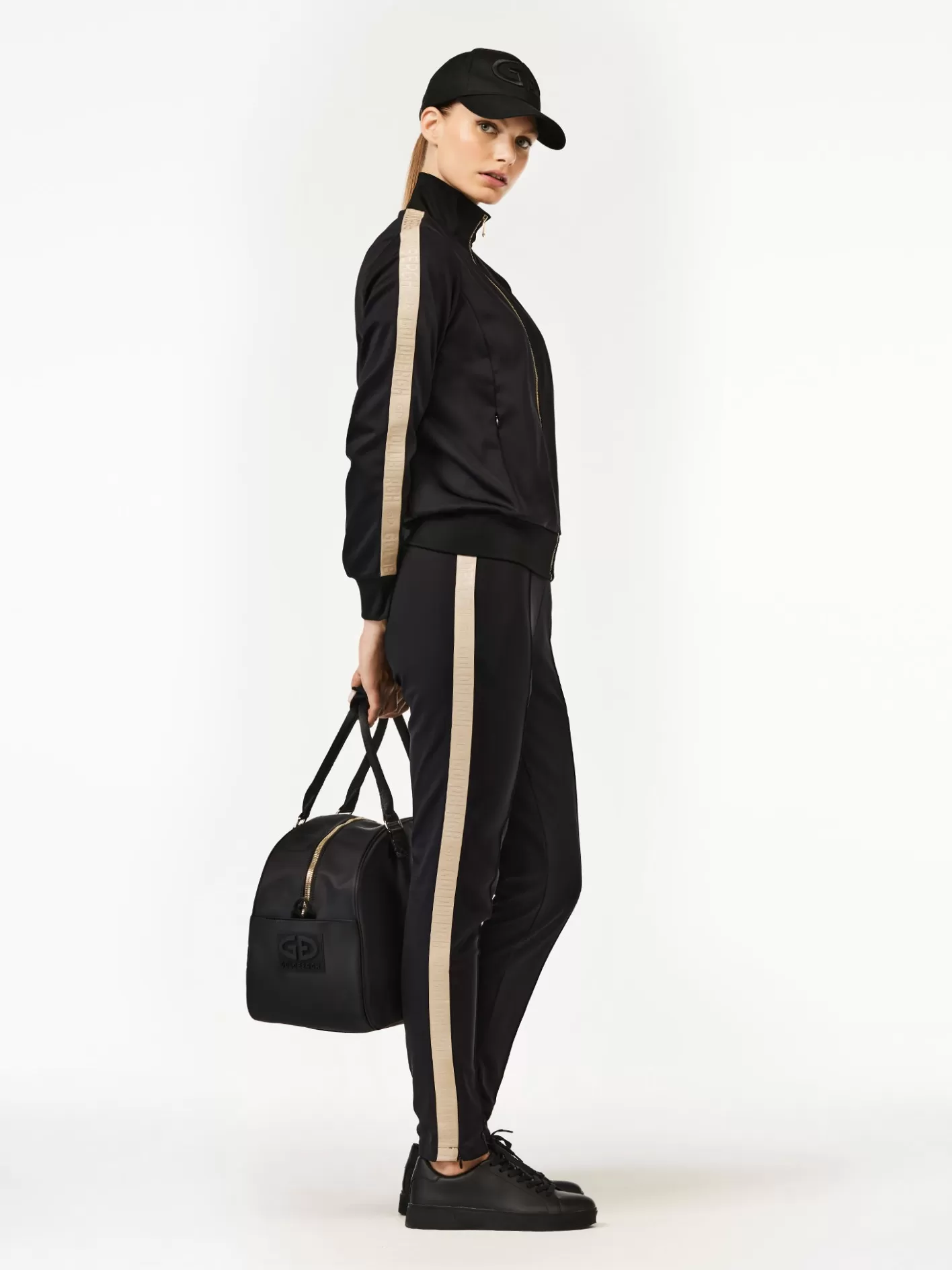 Glanzende trainingsbroekTapered legSatijnen interlockElastische taillebandLangere lengte beenritsenGoldbergh elastische …